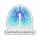 A serene and calming sticker designed to be a gentle reminder to pause, breathe, and find peace. This minimalist design features anatomically inspired lungs rendered in a beautiful blue-to-teal gradient with a delicate, textured pattern, evoking the feeling of air and calm. The words “just breathe” are subtly placed within the lungs, while the powerful affirmation “Keep Breathing & Believing!” anchors the bottom. Perfect for anyone practicing mindfulness, managing stress, or supporting respiratory health.