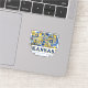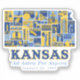 Pegatina con colorido ilustracion del pueblo, lugares y cosas que hacen de Kansas un estado tan especial!