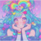 arcoiris divertido, kawaii brillo, anime chica, arte colorido, ojos cardíacos, sonrisa linda, energía alegre, lindo arco iris, encanto soñador, carácter vibrante