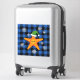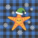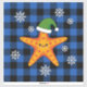 Pegatina Kawaii Navidad Starfish en patrón de búfalo azul