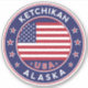 Ketchikan Alaska, pegatina de Ketchikan con bandera de los Estados Unidos, forma redondeada