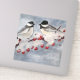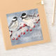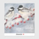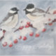 Impresión artística de dos pájaros sentados en una rama arbórea con bayas y nieve.