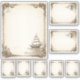 Pegatina divertido ambientado en tonos marrones. Dibujo de un barco de vela con un marco marrón detallado alrededor de los pegatinas.