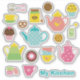 This set features cute illustrated teapots, cups, cupcakes, cookies, honey jars, utensils, macarons, and more — all in soft pastel colors for a cozy, cheerful look.