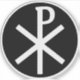 Pegatina La Cruz Chi-Rho (blanco sobre negro)