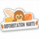 Un lindo y triste pegatina de Orangután con las palabras "La deforestación duele".