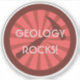 Esta placa vinílica de estilo badge presenta un martillo rocoso de un geólogo de rojo oscuro frente a un diseño de rojizo de rojizo. Sobre el fondo está la frase de personalizable "¡La geología roca!" en un tipo de letra rosa claro, art decó, de estilo industrial. El mensaje y el estilo de fuente se pueden personalizar según se desee. ¡Personalízalo con tu nombre! ¡Que diga "Melissa Rocks" o "Hammer This!" o lo que quiera! ¡Haz de esto tu propia placa de geología personalizada!