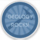 Esta placa vinílica de estilo insignia presenta un martillo rocoso de geólogo de azul oscuro frente a un diseño de quemaduras de sol azules. Sobre el fondo está la frase de personalizable "¡La geología roca!" en un tipo de letra azul claro, de estilo Art Déco, industrial. El mensaje y el estilo de fuente se pueden personalizar según se desee. ¡Personalízalo con tu nombre! ¡Que diga "Rachel Rocks!" o "Hammer This!" o lo que quiera! ¡Haz de esto tu propia placa de geología personalizada!