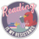 Pegatina La lectura es mi resistencia Insignia redonda púrp