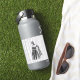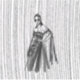 Un ilustracion de diseño en blanco y negro con una mujer encapuchada y un vestido de flores intrincadas con adornos florales y una capa que fluye. El fondo tiene una sorprendente textura vertical de línea, añadiendo un sentido de profundidad y movimiento