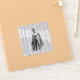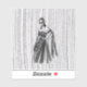 Un ilustracion de diseño en blanco y negro con una mujer encapuchada y un vestido de flores intrincadas con adornos florales y una capa que fluye. El fondo tiene una sorprendente textura vertical de línea, añadiendo un sentido de profundidad y movimiento