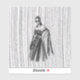 Un ilustracion de diseño en blanco y negro con una mujer encapuchada y un vestido de flores intrincadas con adornos florales y una capa que fluye. El fondo tiene una sorprendente textura vertical de línea, añadiendo un sentido de profundidad y movimiento