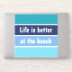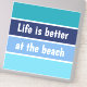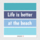 Un patrón de rayas horizontales azul y el texto: La vida es mejor en la playa Haga clic para personalizar y añadir un nombre o una palabra divertida