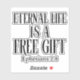 La Vida Eterna es un Regalo Libre Pegatina Cristiano Efesios 2:8 [8] Porque por gracia sois salvados a través de la fe; y eso no de vosotros mismos: es el don de Dios......este es un importante verso de las Escrituras de la Biblia explicándole a todos que no podemos trabajar en nuestro camino al Cielo. Jesús vino a morir por nuestros pecados. Él es el Cordero de Dios que vino a quitarle los pecados del mundo. Tipografía católica cristiana retro de KJV con un diseño moderno en blanco y negro.