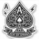 Audaz, monocromo As de espadas con fondo ornamentado, acentos relámpago y un banner de cinta limpia para el texto personalizado. Las líneas vectoriales de Crisp y un fondo transparente verdadero hacen que aparezca en productos oscuros o ligeros.