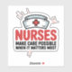 Este pegatina reconfortante honra la compasión y dedicación de las enfermeras con un diseño limpio, alegre y juguetón. En la parte superior hay una jeringa simple para personalizado o un tapón de enfermera con una cruz roja, símbolos de asistencia sanitaria fácilmente reconocibles. Debajo, el texto en negrita "ENFERMEROS" aparece en letras grandes y en mayúsculas en un color vibrante como el rojo o el azul, seguido del mensaje "HACER POSIBLE CUIDADO CUANDO MÁS IMPORTA" en mayúsculas y negras más delgadas. Ideal para regalos de enfermería, decoración hospitalaria o accesorios para exfoliaciones, este pegatina es un homenaje a los que proporcionan cuidado y confort cuando más se necesita.