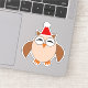 Este pegatina impresionante presenta a un personalizado gracioso de una lechuza Navidad con ojos somnolientos, un pequeño pico naranja y lindos pies naranjas. La lechuza es marrón, con un barril de crema y lleva puesto un sombrero de Santa Claus rojo y blanco listo para los Navidades.