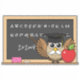 Un ilustracion de un lindo búho de profesor con adorable bigote blanco usando un gorro de graduación con el tassel amarillo y sosteniendo una manzana roja. Está escribiendo en la pizarra y enseñando letras alfabéticas y simples matemáticas. Este diseño de personalizado kawaii es para los amantes de las aves y los animales, y una idea de regalo para el día de aprecio del profesor en la escuela.