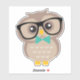 Dulce ilustracion de una linda lechuza marrón que lleva lentes de lectura de gran tamaño y una bolera verde.