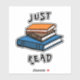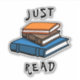 Ilustracion de un montón de libros con texto que dice: "Just Read".
