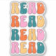 Estilo retro grunge colorido "Leer Leer Leer Leer" diseño de texto con letras coloridas para todos los que les gusta leer libros