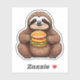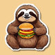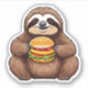 Conoce a tu nuevo pegatina favorito - un lindo perezoso masticando una hamburguesa de queso! Este diseño encantador es perfecto para los amantes de la holgazanería y de las hamburguesas, añadiendo un toque de brillo y encanto a cualquier superficie.