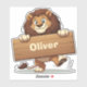 Este divertido pegatina personalizado cuenta con un lindo león personalizado con un enorme cartel de nombre de madera.