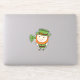 El cómico personalizado leprechaun con un gorra y traje verde, tiene barba de jengibre y tiene un shamrock de suerte.