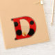 Magnífica letra D en un divertido patrón de manchas Ladybug con una flor amarilla dulce y un pequeño amigo de mariquita. Perfecto para personalizar una botella de agua o un ordenador o para regalar como un favor de fiesta de cumpleaños.