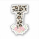 Pegatina Letra floral T nombre inicial Leopardo Cheetah Pri