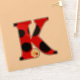 Superlindo Letra K en un divertido patrón de manchas Ladybug con una flor amarilla dulce y un pequeño amigo de mariquita. Perfecto para personalizar una botella de agua o un ordenador o para regalar como un favor de fiesta de cumpleaños.