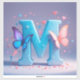 Diseño vibrante que presenta una letra M azul con mariposas decorativas y motivos de corazones flotantes, rodeado de una variedad caprichosa de colores y formas. Ideal para proyectos creativos, festivos y con temática elegante.