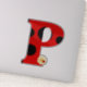 Magnífica letra P en un divertido patrón de manchas Ladybug con una flor amarilla dulce y un pequeño amigo de mariquita. Perfecto para personalizar una botella de agua o un ordenador o para regalar como un favor de fiesta de cumpleaños.
