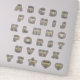 Alfabeto audaz moderno con tiras de diseño de letras monopólicas de bronce, amarillo, taupe, marrón y beige para monogramar, personalizar, personalizar, escribir notas, revistas, cuadernos y más.