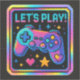 Premium holographic sticker featuring bold "LEVEL UP" text with retro 8-bit gaming controller design. Perfect for laptops, gaming setups, and tech accessories. High-quality prismatic effect creates stunning rainbow reflections.