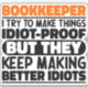 Un Homenajeado Portero Dice "Tendero Que Intento Hacer Que Las Cosas Sean Una Prueba Idiota Pero Siguen Haciendo Mejores Idiotas". Agarra este divertido diseño de Bookkeeper como un regalo gracioso para una madre, papá o amigo formidable.