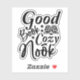 Un minimalista pegatina blanco y negro que dice: Buen libro, acogedor rincón.