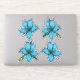 Lirios pintados en ricos tonos azules con tendriles a juego. 2 tienen un tallo y hojas verdes. Obra de arte y diseño de Karlajkitty