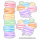 Esta divertida hoja de pegatinas presenta dos grupos de 6 macarones de aspecto escrupuloso (lila, rosa, naranja, azul, amarillo y verde) con relleno blanco más una pila "tambaleante" de macarones con los mismos colores - personalizable con su nombre - por katz_d_zynes
