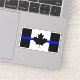 "Línea azul delgada" es un término que típicamente se refiere al concepto de policía como la línea que impide que la sociedad descienda en un caos violento. El "azul" en la "delgada línea azul" se refiere al color azul de los uniformes de muchos departamentos de policía. Atribución de la imagen: Por И д е о о г htém - Derivada de: Flag of Canada, CC BY-SA 4.0, https://commons.wikimedia.org/w/index.php?curid=90881277.