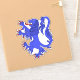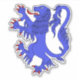 Este diseño de Richard H. Fay presenta un azure rampante de león heráldico, un león azul representado en el perfil criando sobre sus patas traseras, listo para evitar a todos los atacantes.