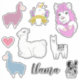Adorablemente lindos y divertidos pegatinas de llama con estilos y colores variados.