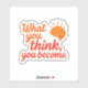 Sigan inspirados todos los días con este colorido pegatina de "Lo que piensan, se convierten". Con letras atrevidas y un ilustracion cerebral creativo, este diseño es perfecto para laptops, botellas de agua, revistas, planificadores y más. Un gran recordatorio para mantener tu mentalidad positiva y centrada.