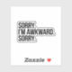 Abraza tus rarezas y no te disculpes por nada con esta divertida y reconocible pegatina. Con la frase "Lo siento. Soy torpe. Lo siento." en negrita y texto simple, esta pegatina es perfecta para introvertidos, aquellos que carecen de habilidades sociales o cualquiera que encuentre humor en los pequeños momentos incómodos de la vida. Pégala en tu portátil, botella de agua, cuaderno o en cualquier lugar donde quieras expresar tu personalidad única con un toque de humor autocrítico. Esta pegatina de vinilo duradera está hecha para soportar los golpes y tropiezos cotidianos, ¡al igual que tú!