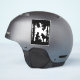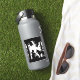 Este pegatina de vinilo es una silueta negra sobre blanco de capucha rojiza sentada debajo de los árboles en el bosque con una lata de agua que le puede hablar al lobo.