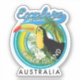 Logo de exploración de la isla de Fraser Australia con un pájaro Toucan.