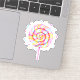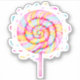 Pegatina con lollipop y caramelo multicolor libera ilustracion digital. Los dulces redondos son de color rosa, amarillo y azul.