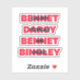 Muestra tu lado de la biblioteca y el amor por los libros de Jane Austen con este pegatina de libros que presenta los nombres de los personajes principales del Orgullo y el Prejuicio de Jane Austen: Elizabeth Bennet, Fitzwilliam Darcy, Jane Bennet, Charles Bingley en azul oscuro y rosa. *Tenga en cuenta que la marca de agua Zazzle que aparece en la vista previa del zoom NO aparecerá en el producto impreso final. © Bookish y WonMart
