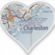 Mapa pegatina de la época de Charleston en Carolina del Sur en 1950, mostrando la ciudadela y la isla de Palms.