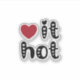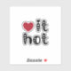 A vinyl sticker featuring a simple, playful design with images of a heart for saying you love things hot. A red heart is used to say "Love", with smaller hearts that assume the color of the chosen background cut out in the letters. The color of the red heart and the texts can be individually customized.